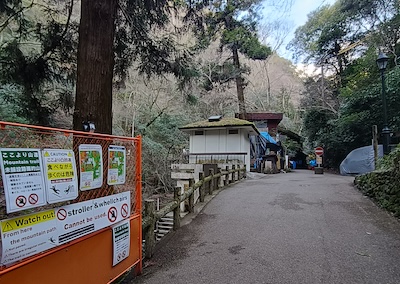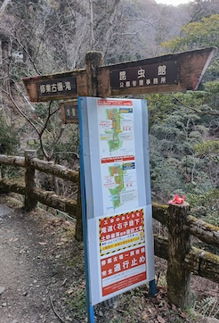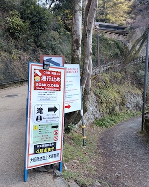 ・2025年11月24日、箕面大滝前 店舗での火災のため、遊歩道は滝の200m手前で通行止め