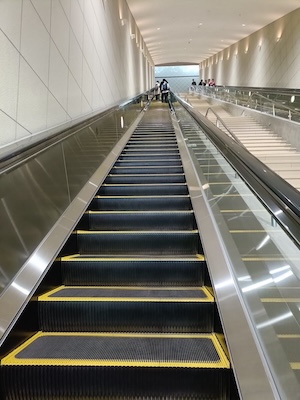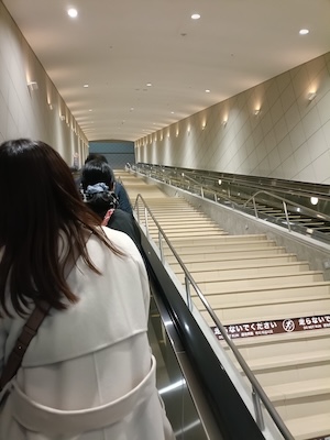ゆっくり着いてくる人が多い中で、私もガイドさんの真後ろにぴったりとくっついて、エスカレーターに乗り込みます。